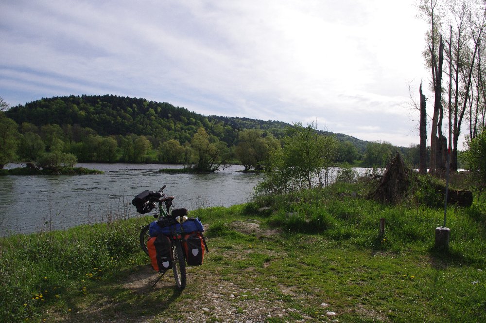 Sonntag gehts in den Bayerischen Wald – der so bergig ist, daß er eigentlich “Berg” und nicht “Wald” heißen müsste! Ich kämpfe mich auf 1100m hoch, bei Buchwald über die Grenze nach Tschechien. Dort liegt noch Schnee. Danach gehts langsam wieder bergab, abends suche ich mir erschöpft einen Platz am Bach im Wald. Als es komplett dunkel ist, planscht ein Tier im Bach. Kann hier alles sein: Bieber, Otter, Bär… weiterschlafen!
