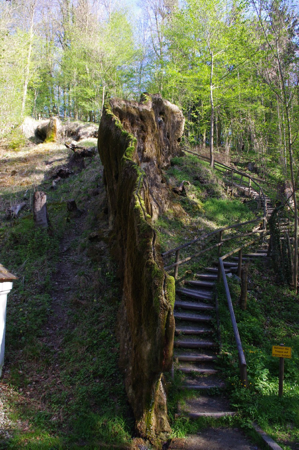 Der 1. Mai ist ein Dienstag? Mit Brückentag hab ich ja 4 Tage frei! Da muss sich doch was machen lassen… Freitag abend packe ich meine Sachen und am Samstag morgens gehts an der Isar entlang bis kurz vor die Donaumündung. Unterwegs sehe ich den “wachsenden Felsen”. Ein kleines kalkhaltiges Rinnsal in einem schattigen Wäldchen lagert so viel Kalk ab, daß mithilfe von Moos und Algen und der jahrhundertelangen Pflege von Mönchen eine über 4m hohe Mauer den Berg hinunterwächst. Sieht irre aus! Abends suche ich mir einen Platz im Schilf, überall kriechen Mäuse herum. Die Vogelwelt feiert den Frühling.