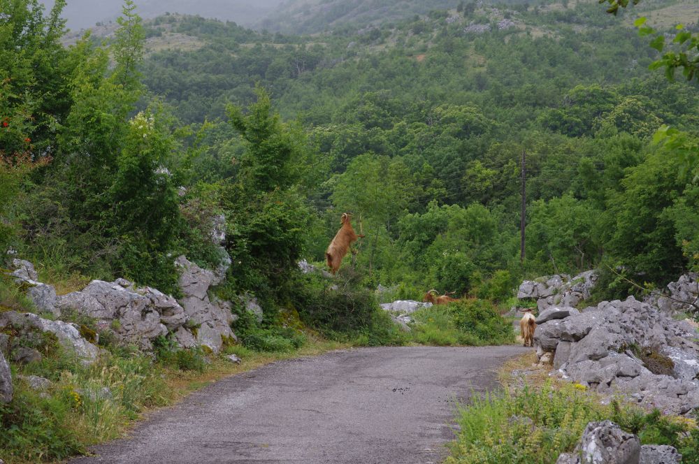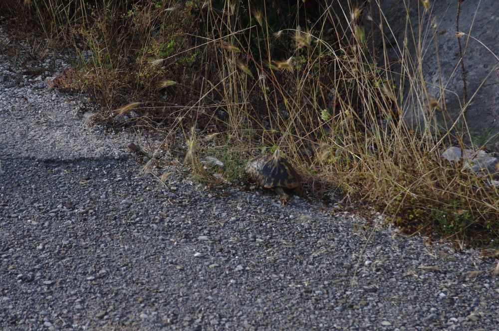 Dienstag schauen wir die Stadt an (sehr empfehlenswert!), retten eine Schildkröte vor dem heftigen Verkehr auf der Küstenstraße und schlängeln uns dann über kleinere Straßen nach Montenegro. Dort ist alles herrlich entspannt, die Leute grüßen und lächeln viel mehr. Wir sind aber etwas erledigt und fahren nicht um die ganze eigentlich sehenswerte Bucht sondern nehemn die Fähre Richtung Kotor. Dort sind wir bald auf einem winzigen pseudo-Campingplatz (keine Dusche, dafür nur 6€ für 2 Personen).