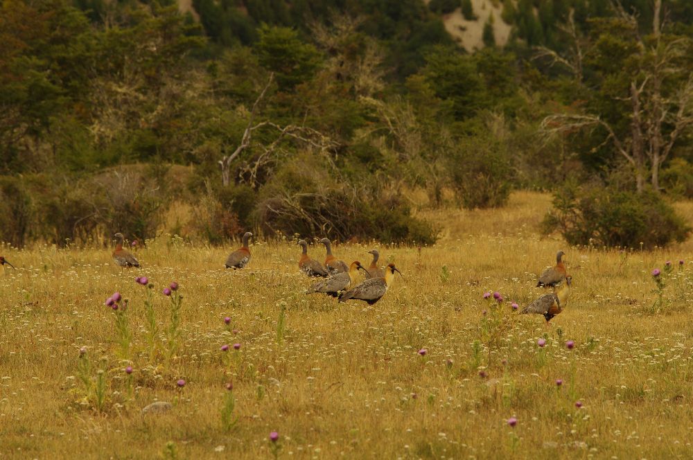 Ich fahre weiter. Mein GPS geht immer wieder aus, das Kabel ist kaputt. Stelle auf Akku um, muss halt jetzt mehr laden. Die Landschaft ist sehr hügelig und die Farben überaus patagonisch. So gegen 19:00Uhr verschwinde ich zwischen 2 Hügeln, die mich vor der Straße verbergen und baue mein Häuschen. Instinktiv baue ich die Plane als Vordach, als alles steht beginnt es zu regnen. Kochen im Schneidersitz, die Spaghetti schmecken hervorragend! In einer Regenpause streife ich druch die Hügel, zahlreiche Kletten sammeln sich in den Socken. Kaninchen flüchten in wildem ZickZack, Vögel beobachtem mich aus dem Gebüsch, aus einem alten Kufladen wachsen rote Gewächse.