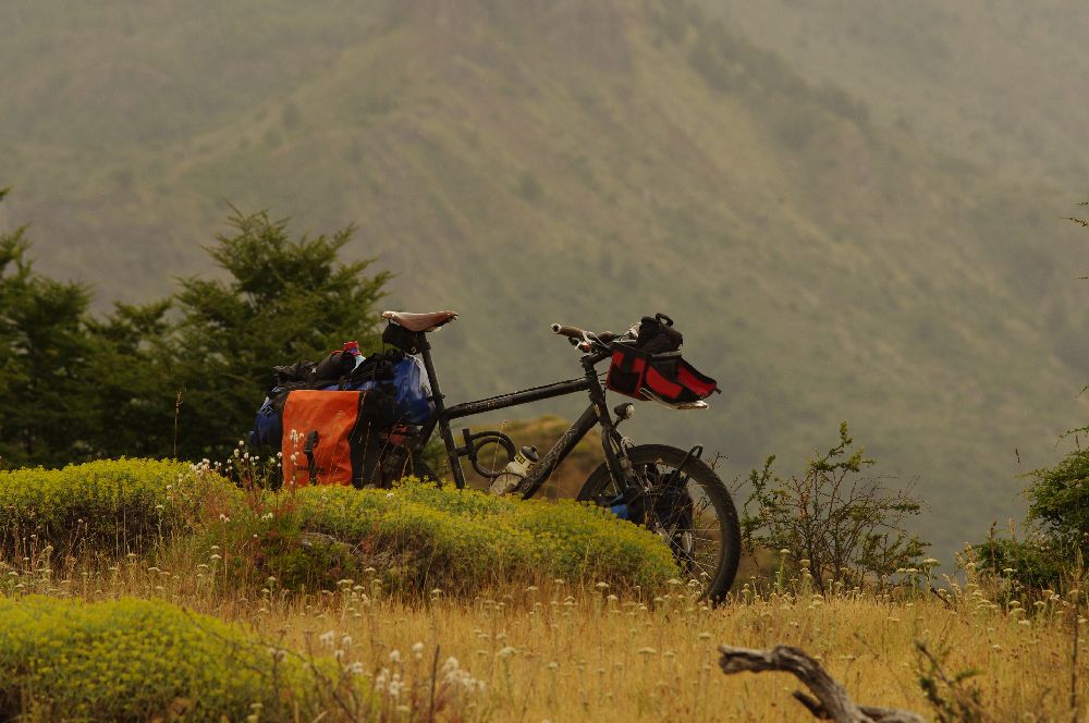 Morgens ca. 8:30Uhr fahre ich los und bekomme von den Jungs Glückwünsche mit auf den Weg. Eine Weile geht es hügelig am See entlang. Leider sind zu viele Wolken da, sie verhüllen den versprochenen Blick auf das Eisfeld und Mt Valentin (4000m). Auf einer langen Gerade sehe ich einen Radler vor mir. Etwa 30 km verfolge ich seine Spur. Oben an einer langen Steigung sehe ich ihn. Bis ich oben bin ist er weg. Ich brauche eine Pause. Müsli, Orange und Kekse machen mich wieder fit. Dann rolle ich den Berg hinunter. Unten steht das Rad des Verfolgten an einem Baum. Er ist nirgends zu sehen, also fahre ich weiter. Später sollte ich ihn wieder treffen, Tanguy, ein Franzose zum Pferde stehlen.