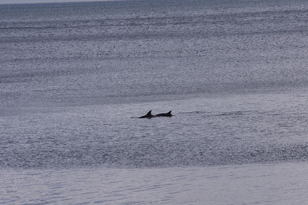 Morgens ist der Fluß immer noch oder schon wieder recht hoch. Trotzdem kann man ihn weiter landeinwärts problemlos überqueren, er führt selbst nicht viel Wasser. Vom Ufer aus sehe ich Delfine. Mittags erreiche ich mein Fahrrad. Nach einem ausgiebigen zweiten Frühstück mit Honigmüsli und Kaffee bin ich bereit für die lange Rückfahrt nach Punta Arenas. Abends komme ich dort an, meine Sachen sind immer noch klamm. deshalb beschliesse ich, in einem Hostal zu übernachten. Nach mehreren Anläufen finde ich “Magallanes”, wo ich eine Nacht für 25000 verbringen kann. Das ist ungefähr die drittgrösste Ausgabe im ganzen Urlaub. Dafür kann ich mein Zelt im Hof trocknen. Mit den anderen Gästen komme ich nur bedingt ins Gespräch. Es sind Schweizer, die überkorrekt und penibel reinlich nur flüstern kommunizieren. Ich fühle mich unwohl und mit meinen staubigen Radtaschen irgendwie zu dreckig für diese Umgebung. Nicht meine Welt. Das Bett ist gut und ich kann immer noch in geschlossenen Räumen schlafen.